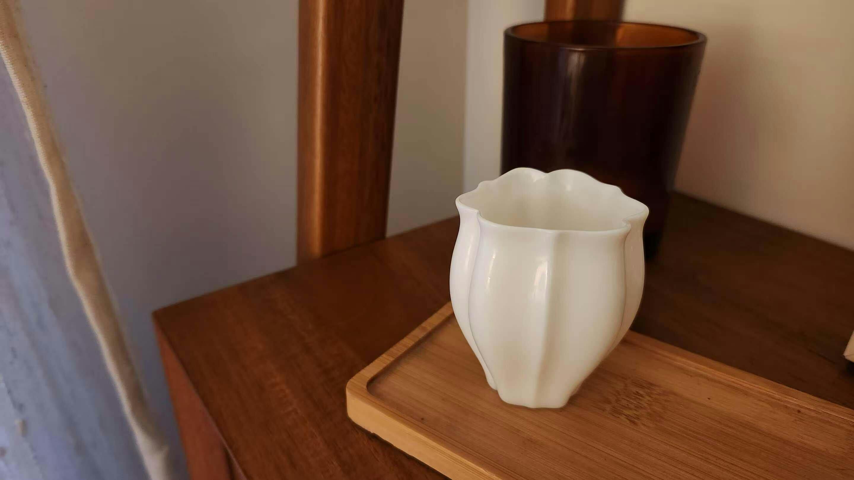 The flower-shaped cups are a traditional motif that began in the Song Dynasty (960 to 1279 CE) but Dehua tulip-shaped porcelain cups were a favorite of Qing dynasty (1644-1911 CE) emperors as tulips brought from Europe became popular in China. The artist’s love for the tulip is obvious with the subtle beauty of a bloom in two different stages of opening. These white porcelain teacups are a simple yet elegant combination of the past and the modern.